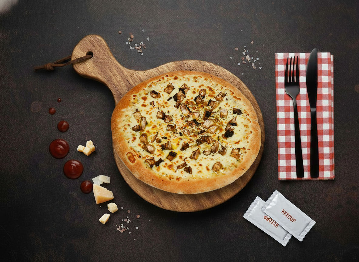 Samion’s Garlic Mushrooms Supreme comes in Small 7 inch, Medium 9 inch, Large 12 inch, and Extra Large 16 inch sizes. It is topped with garlic butter, mushrooms, mozzarella cheese, onions, bell peppers, sweetcorn, and can be enhanced with extra toppings like jalapenos, BBQ chicken, or olives.