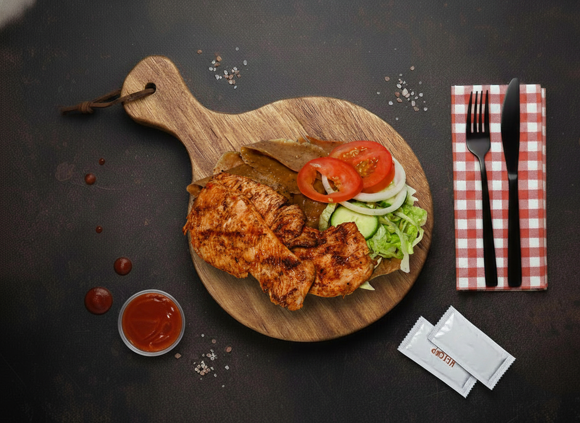 Samion’s Mixed Meat Tray combines tender pieces of chicken, beef, and donner meat, cooked with spices and served with fresh salad and sauces. Each tray is rich in flavor and perfect for sharing or enjoying a filling solo meal.