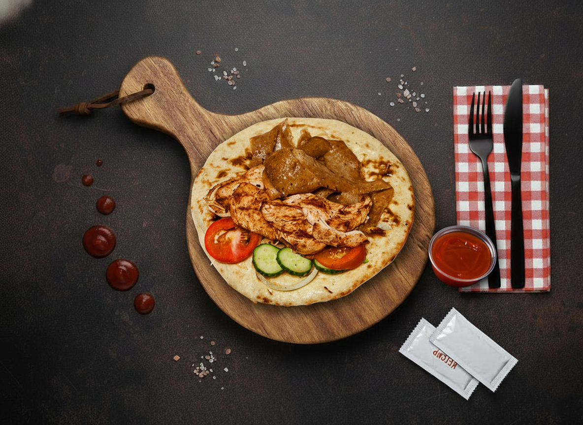 Samion’s Mixed Kebab combines tender donner meat, grilled chicken, and vegetables, wrapped in a soft pitta or large naan. Each bite delivers a variety of flavors and textures, making it a satisfying and hearty meal.