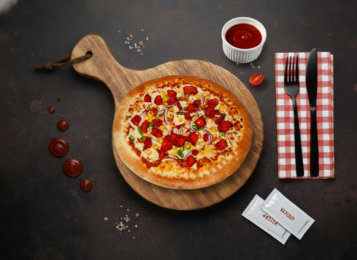 Samion’s Eastern Delight Pizza is flavourful pizza with a mix of tender meats, fresh vegetables, and melted cheese, inspired by rich Eastern spices.