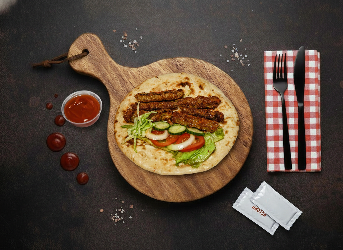 Samion’s Seekh Kebab is made with minced, spiced meat cooked to perfection on skewers, served with fresh vegetables and sauces in soft pitta or large naan. Its rich, smoky flavor and tender texture make it a classic favorite.